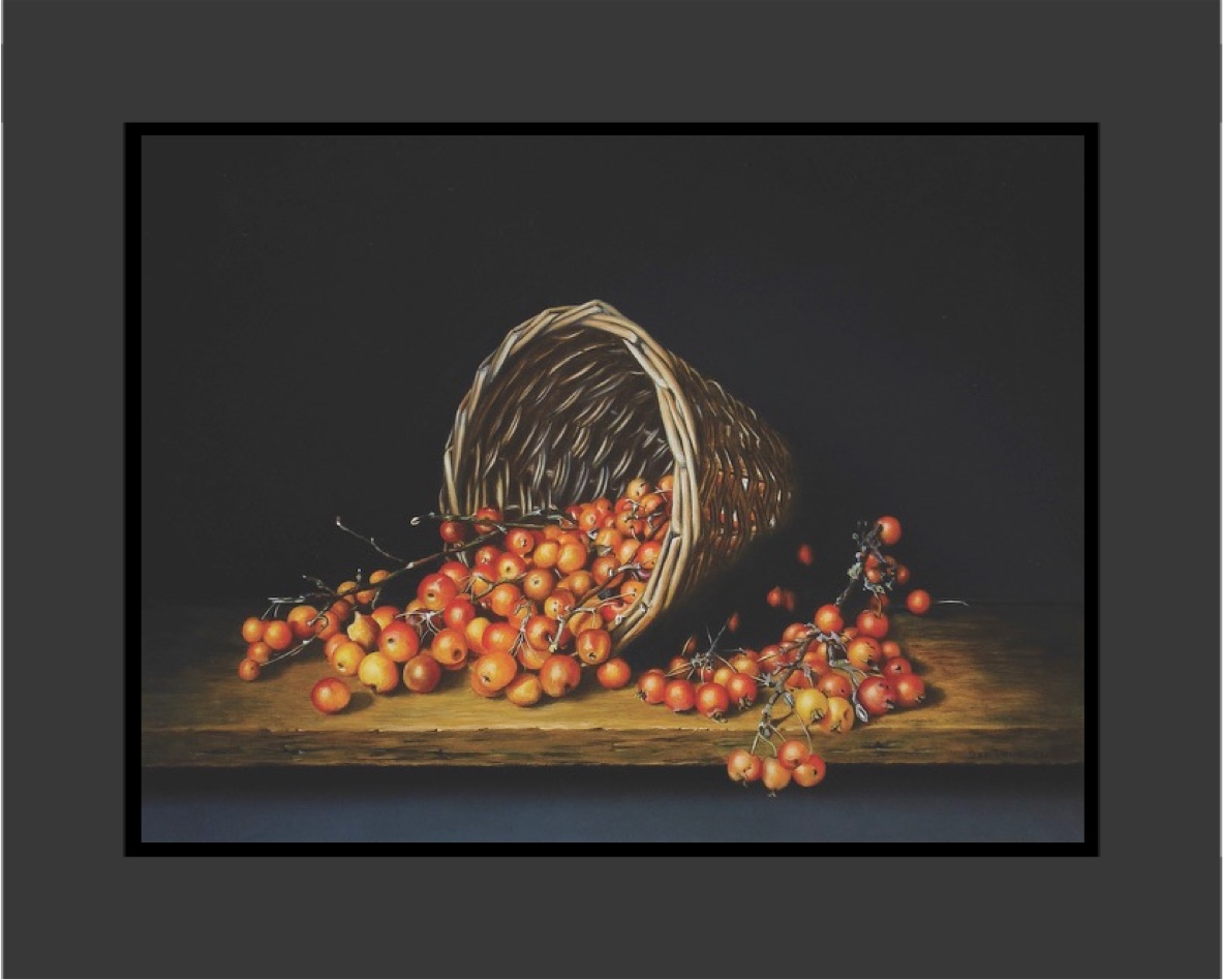 Stilleven met mand met sierappeltjes