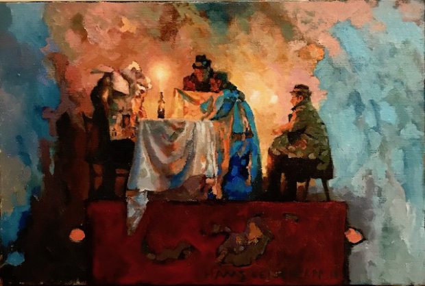 Bijster uitgevorkt. Een goede maaltijd genoten en nog even – ieder voor zich – in alle rust natafelen.