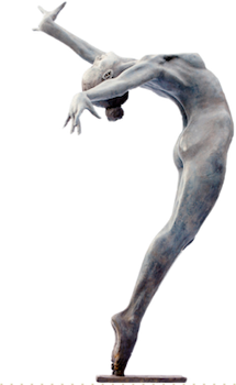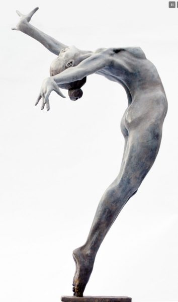 Elegantie, souplesse, beheersing, dat zijn de kenmerken van dit opmerkelijke bronzen beeld. In één woord, gracieus. Een haast onmogelijke houding waarin het bewaren van het evenwicht optimaal tot uitdrukking. Het is het “vangen van het moment”