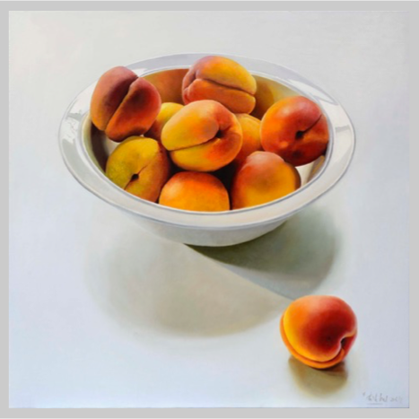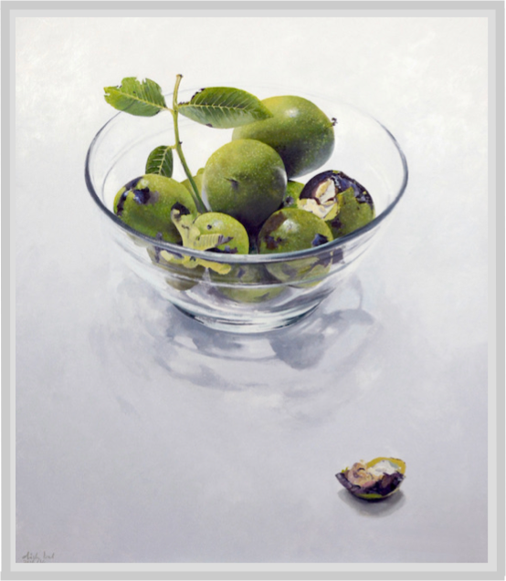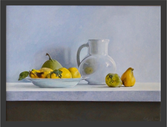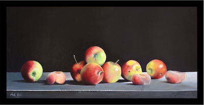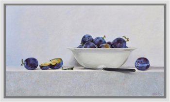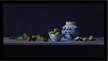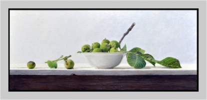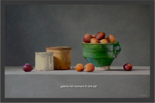 Gelet op de schaduwwerking worden de vijgen door verschillende lichtbronnen beschenen. Door het licht dat ook achter de schaal vandaan lijkt te komen ontstaat er een sterke dieptewerking in het schilderij.