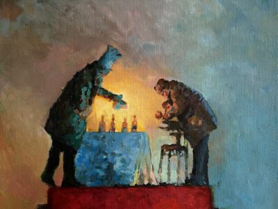 Nu de zomervakantie aanbreekt kunnen we weer beschikken over nieuwe schilderijen van Hans Leijerzapf. Zoals altijd weet hij gebeurtenissen uit het dagelijks leven zodanig te verbeelden dat hij je als het ware een spiegel voorhoudt.