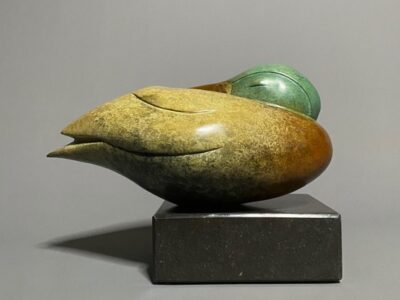Bij Veerle Lories is de eend teruggebracht tot de essentie van de vorm en de prachtige patina doet de eend leven.